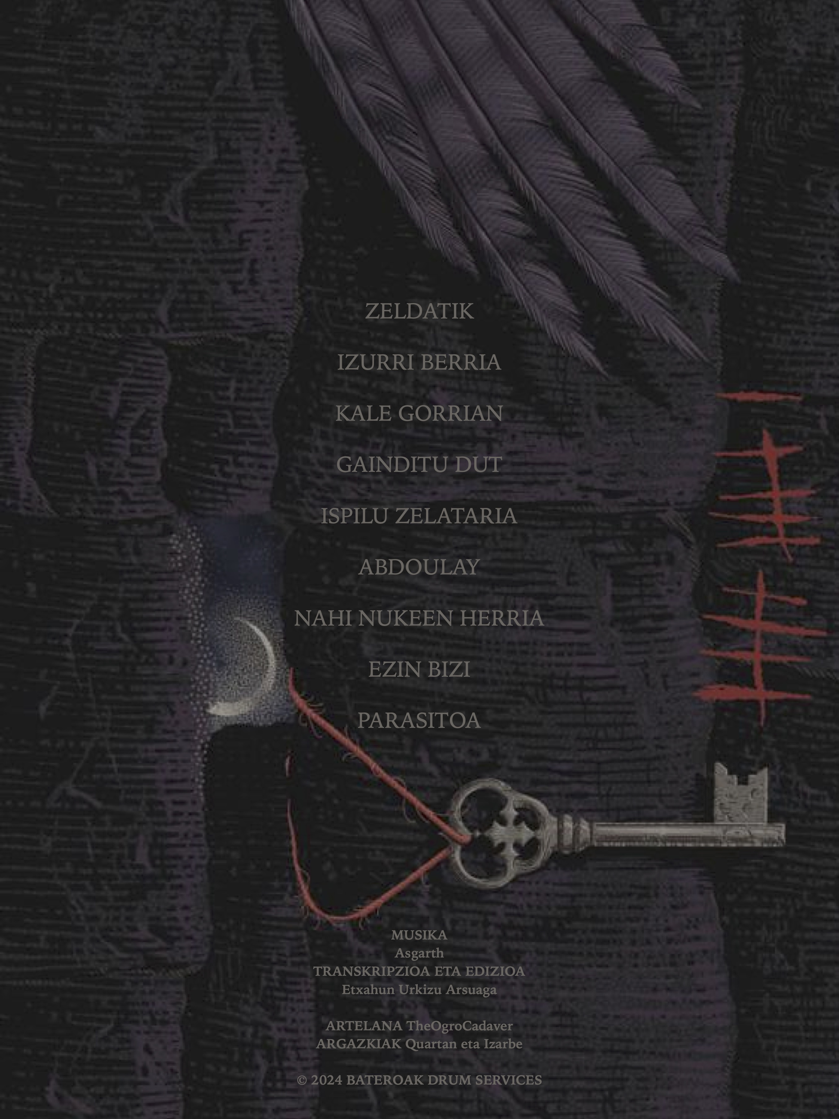 Asgarth taldearen ‘Zeldatik’ diskoko bateria transkripzio liburua.